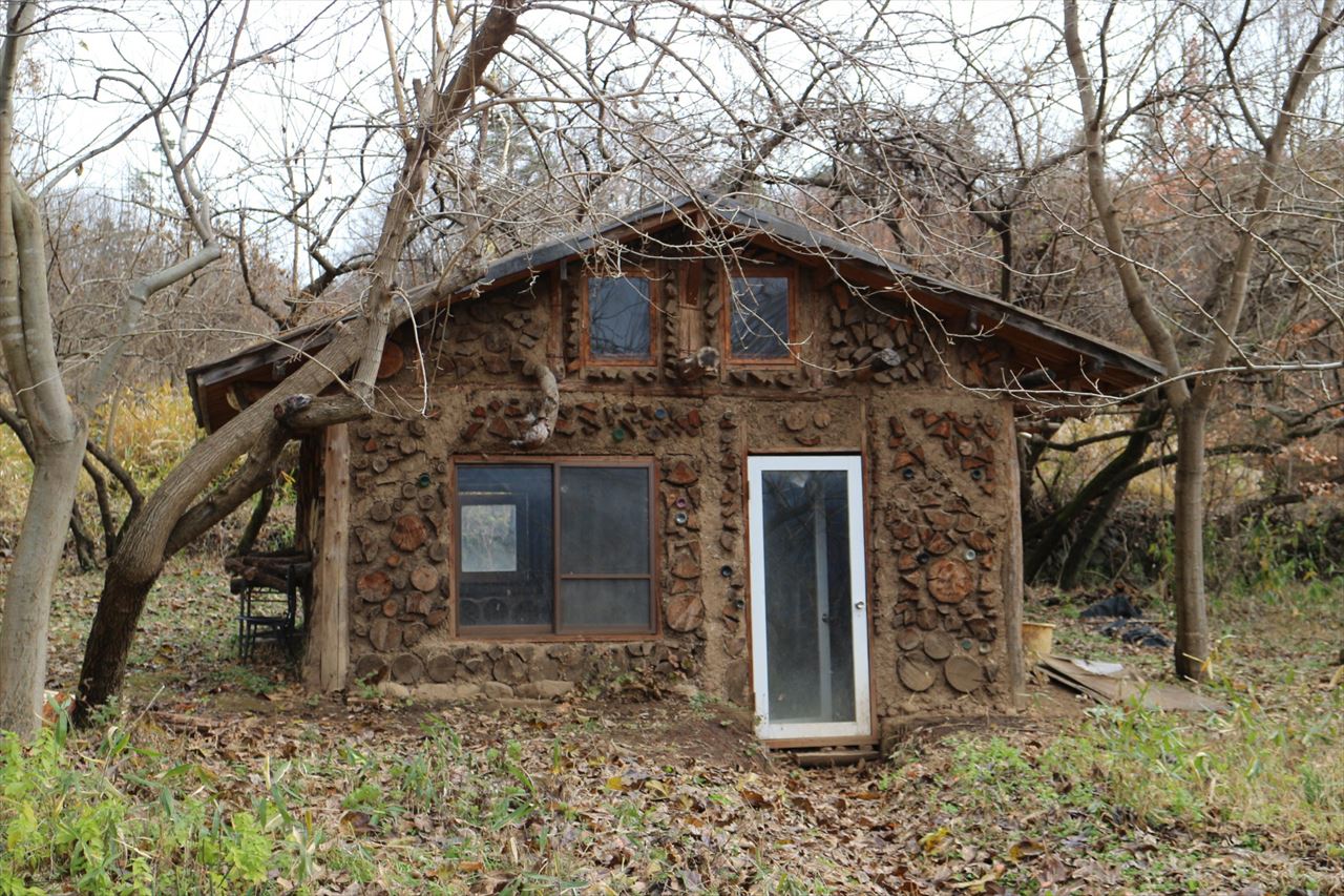 倒木が物凄く多かった時期にそれらを活用して建てた木と土の家(Cordwood House)。大分手間がかかりますが、雰囲気はでますね^^