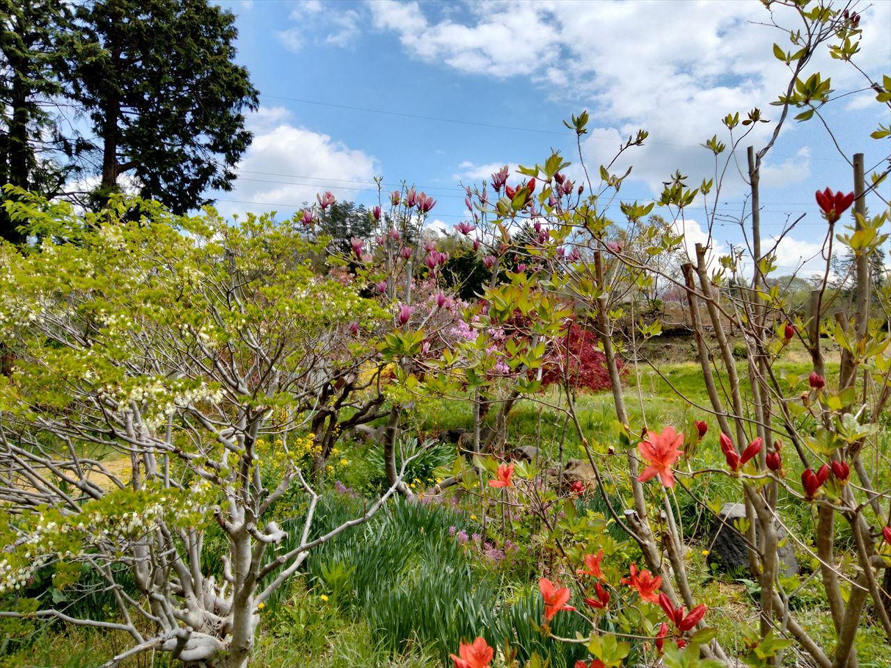 お花は自由に揺れて蝶々が飛んでいる。