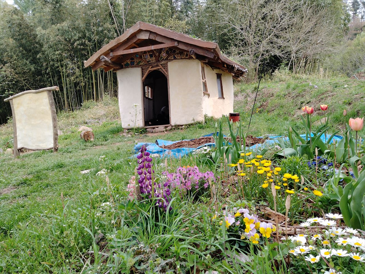 ビヨンド自然塾では、自然建築(小人のお家)の建て方や、食べられる野菜(野草や山菜も)について教えてもらいました。