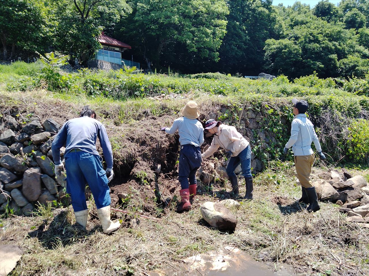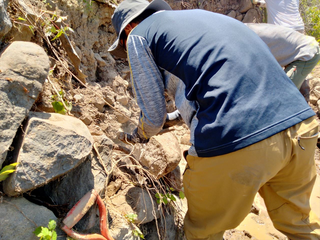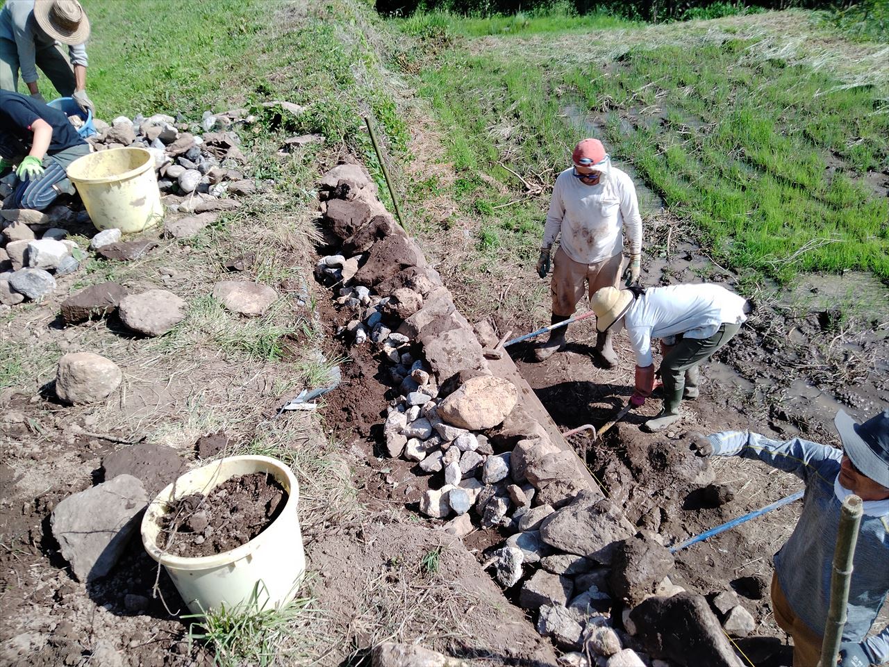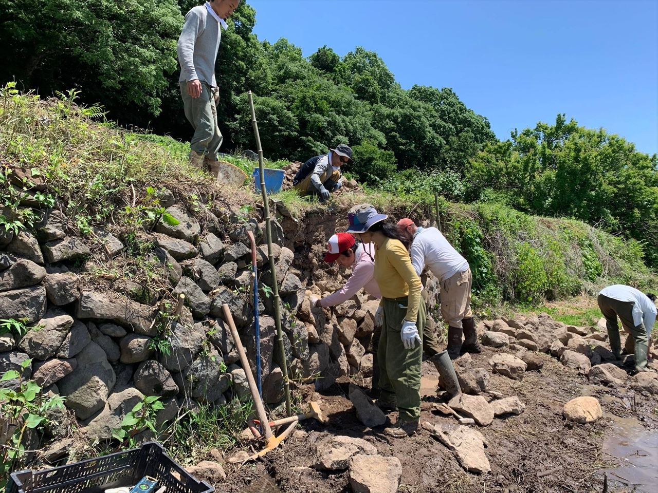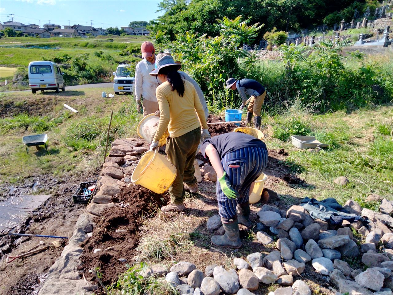 急ですが、今週または来週(6/23-7/1の間)の平日、雨が降らない日にまた石組みを行います。そこの場所は石が大きめなため、持ち上げるのに力が必要です。うちのスタッフのみではその力の確保が難しいため、力自慢の方に是非、手を貸していただけたらと思っております。行っても良いという方いましたら、是非お早めに連絡願います。チカラとしては20kgのポリタンクを片手で持てるくらいであれば十分だと思います。下記の動画を参照。