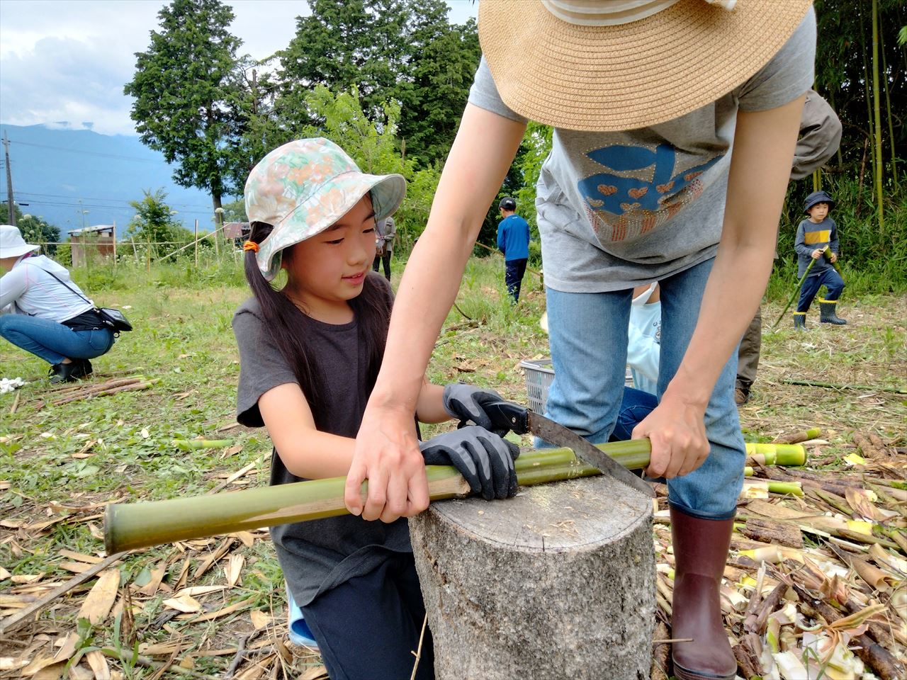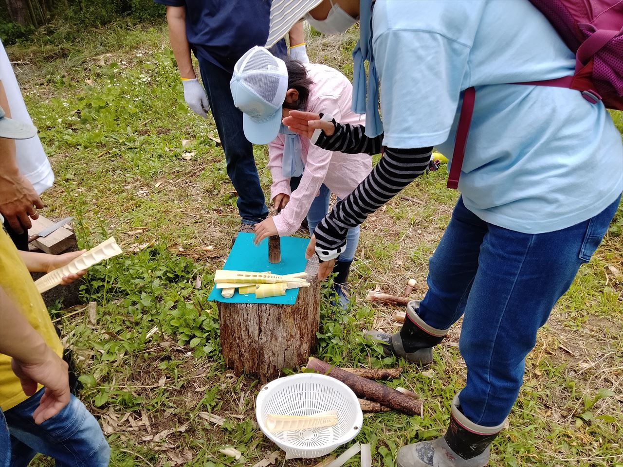 タケノコは人間が手を掛けずにも毎年豊かな実りをもたらしてくれるありがたい食べ物です。そんな恵みのありがたさを多くの人達に味わってもらうために企画しています。竹はタケノコを食べるだけでなく、加工していろいろな工作物を作ることもできる便利な植物です。イベントでは竹を使って箸やコップ、皿なども作りました。