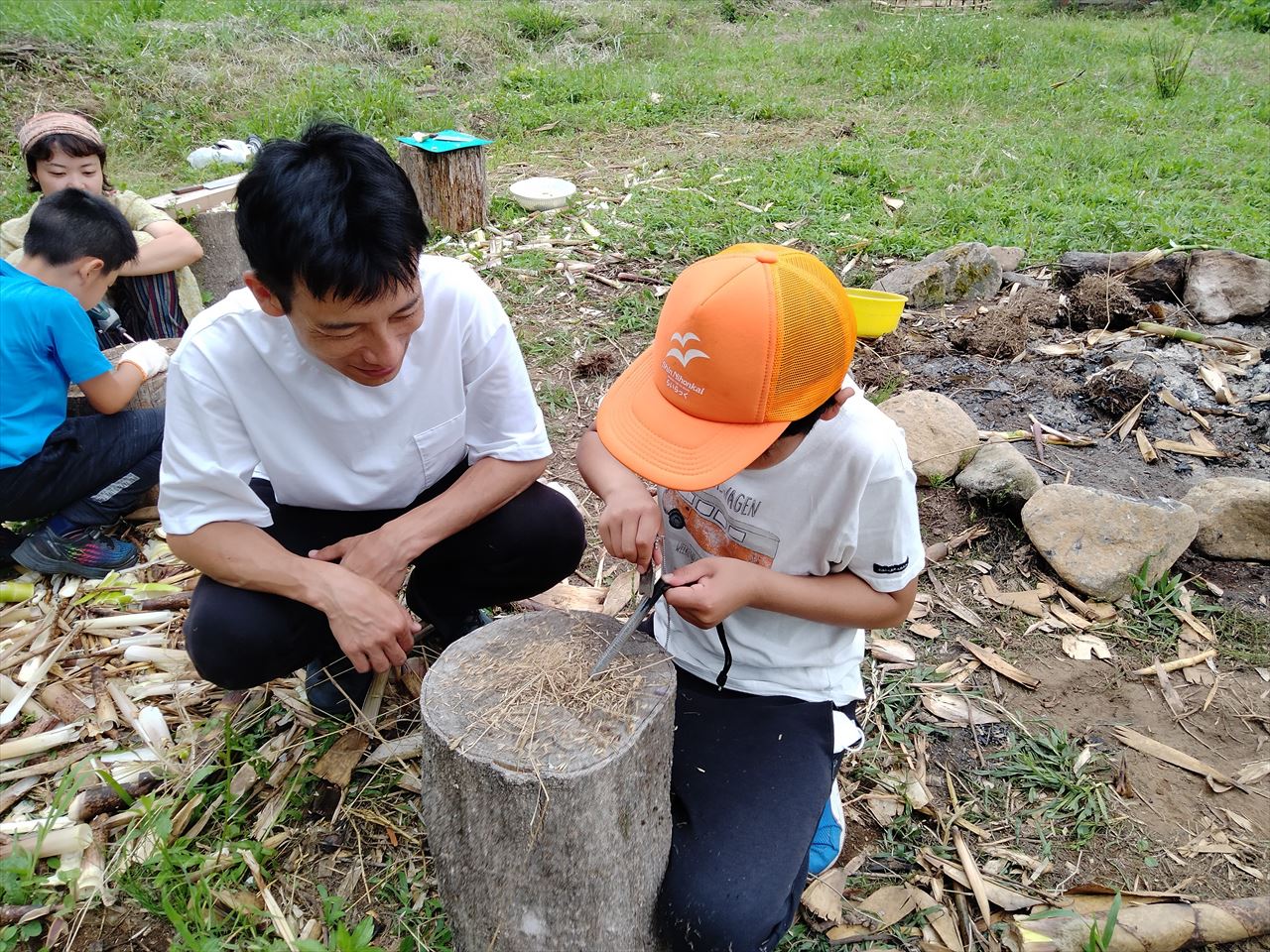 ファイヤースターターで火をつけたり、竹を用いて色々モノづくり。尺八を作っている子もいましたね。