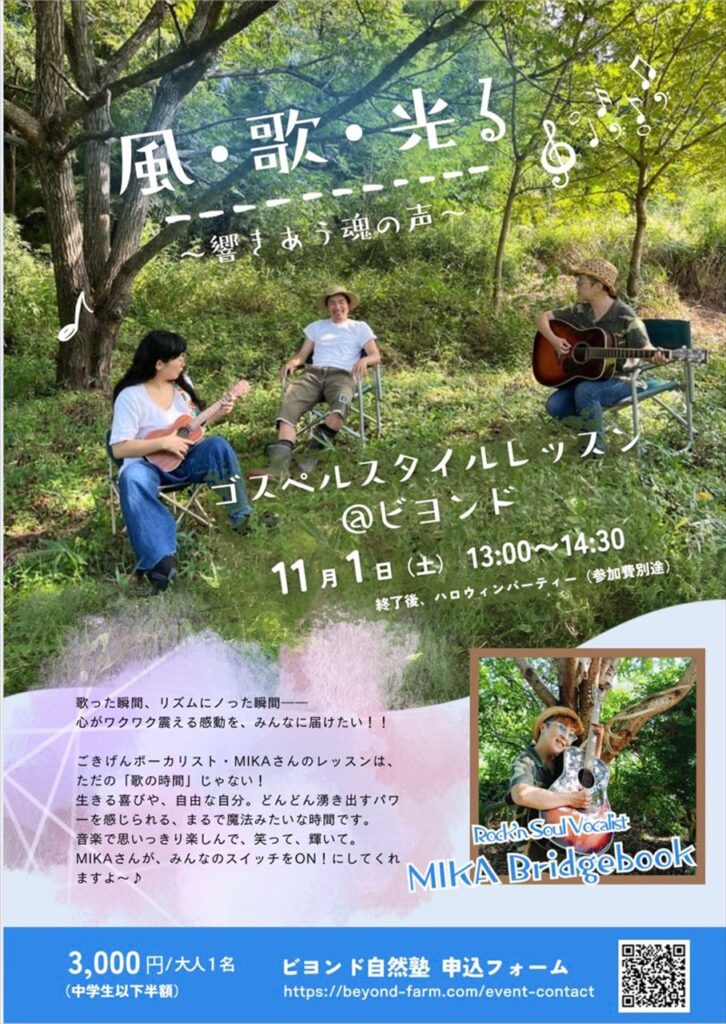 ゴスペルレッスン 風・歌・光る ~響き合う魂の声~ 2025 10/03 Beyondの日々 イベント 心の解放・自分探しなど 内容詳細 2025/10/022025/10/03 Beyondの日々 イベント 心の解放・自分探しなど 内容詳細 よかったらシェアしてね! URLをコピーしました! URLをコピーしました! ハロウィンパーティ 2025 この記事を書いた人 beyond 関連記事 ハロウィンパーティ 2025 2025/09/29 木に登ってみよう!(イベント) ~ロープを使えばスイスイ登れる!~ 2025.10.12 2025/09/08 心の解放ch 18 自分を好きになろうと頑張る?! 2025/09/06 栗拾い+かまどご飯 イベント 2025.09.21 2025/09/03 希望を見出す 2025/08/23 小学生サバイバルキャンプ 2025/08/18 ネガティブな人がポジティブに変化する瞬間 「心が変わると目の前が変わるんだな」 2025/08/01 ビヨンドメソッドで人生が大転換 2025/07/20