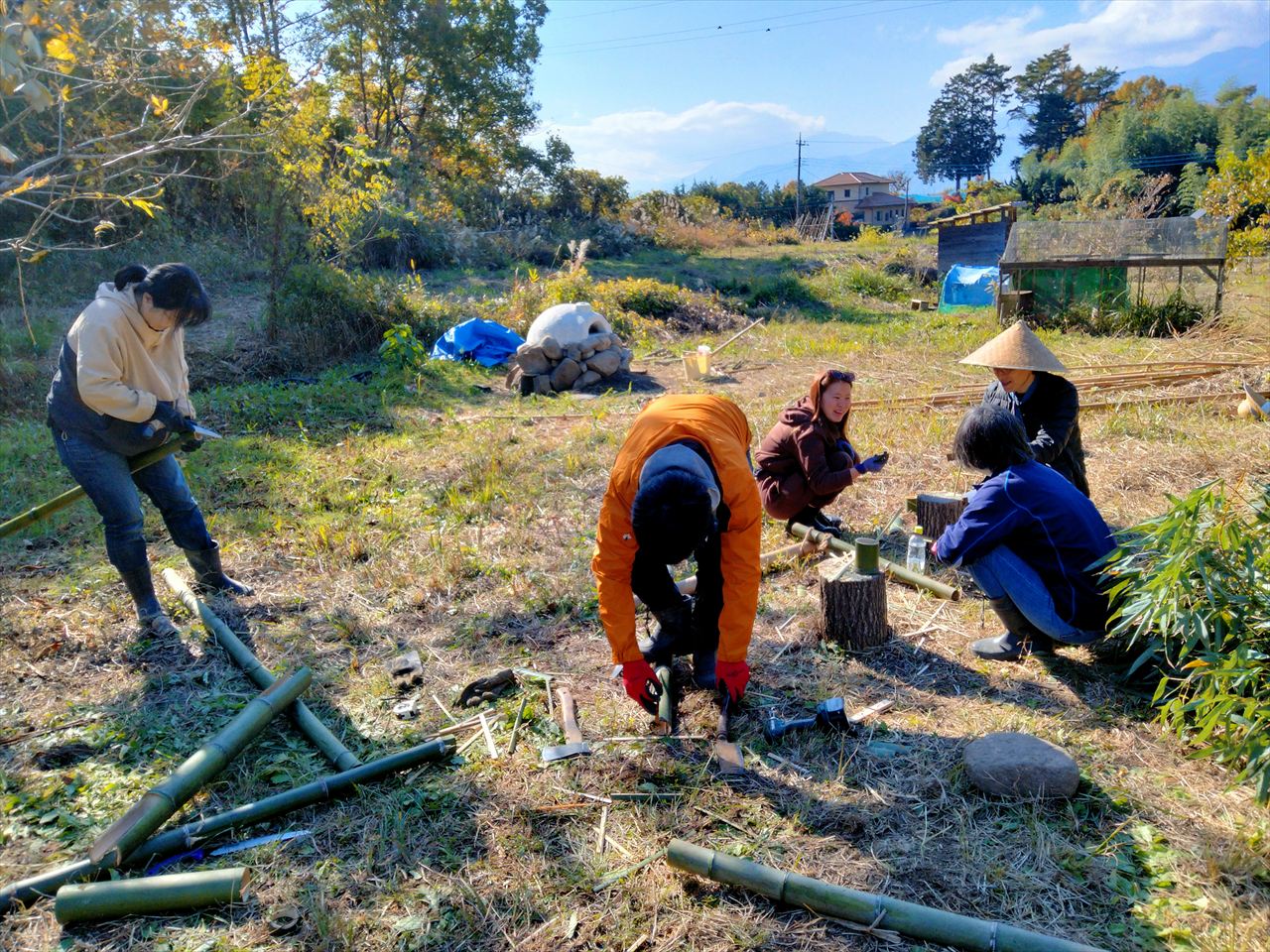 「菌ちゃん農法では土に埋めるものを30cmに切る必要があると書いてあったんだけど、ここらの竹はもっと長いから切るのが大変~」