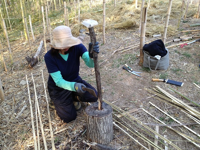 Mさんも段々と作業に慣れてきて、竹割りを順調に進めてくれた。