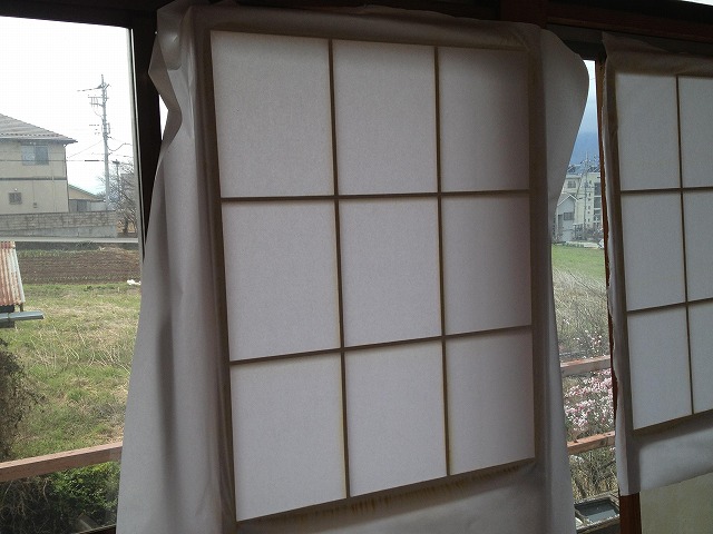 自分が小学校のPTA役員会議や、代表区長の職務で不在だった間に、一人で出来る作業として障子張りを提供したのです。