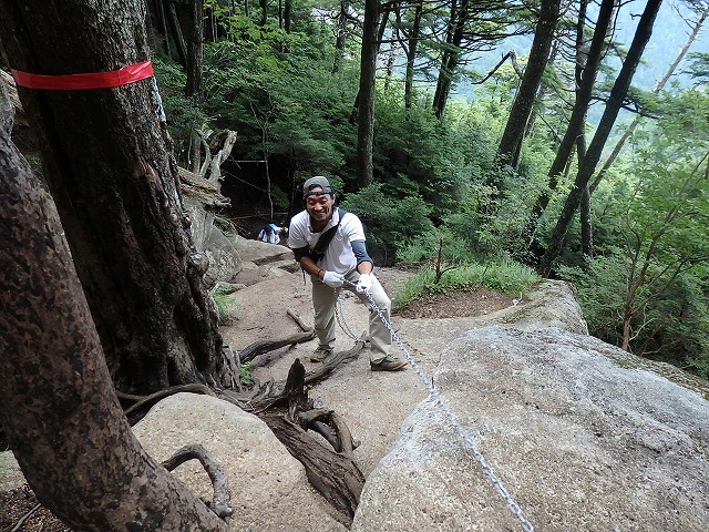 一時間ほど登ったところで、ハプニング発生。W君は足を滑らせ、捻挫しました。