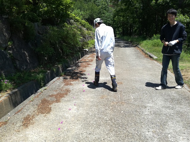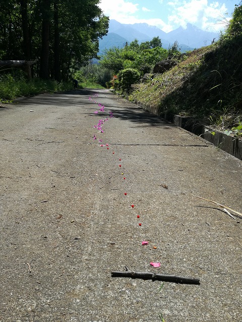 - 花が道路に一直線に!