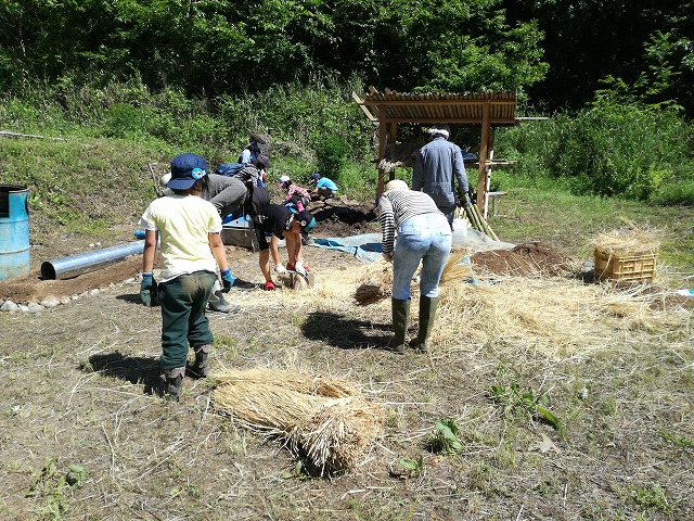 本日の工程はストーブ作りが終わるまでは土を載せたり詰めたりできなかったので、子供達の活躍の場がやや物足りなかったかもしれません、、、。希望としては今日、少し土を載せたかったのですが、何とか最終日に完成まで進ませたいです!