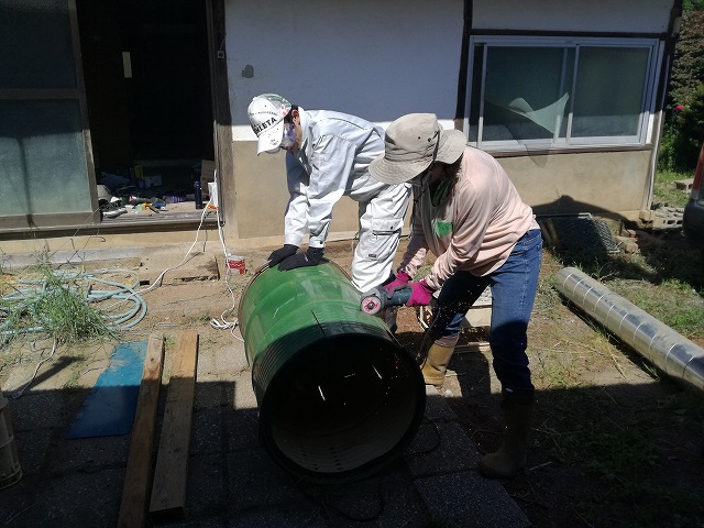 ストーブ内部の内側ドラムをトタン板から作成しました。慣れていないと結構難しい作業です。子供達がトンテンカンテン一生懸命に作業してくれました♪
